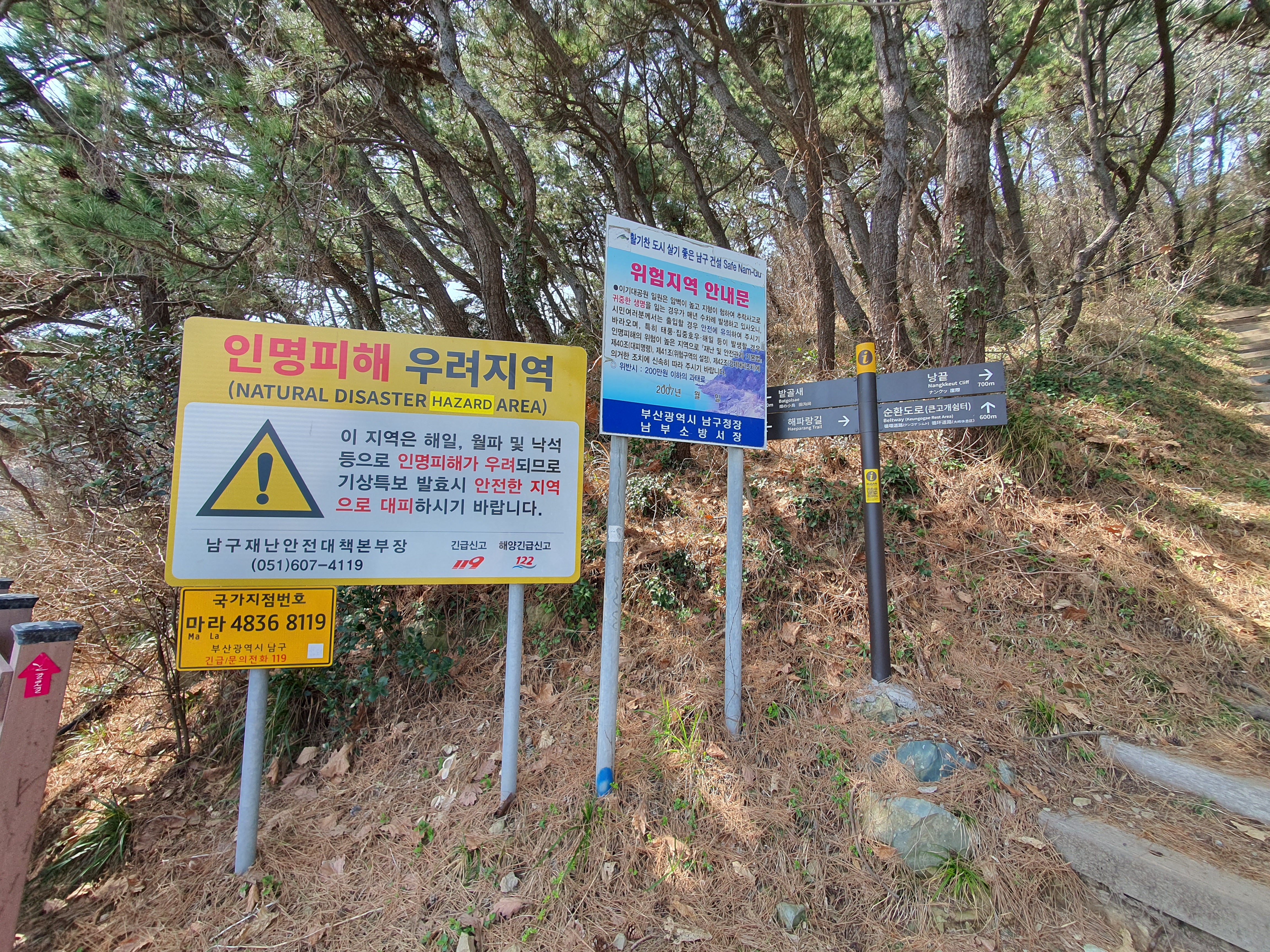 오륙도 스카이워크부터 시작해서 이기대를 걷는 해안산책로가 오륙도-농바위-어울마당-이기대-동생말 경로로 4.6km 이어져 있다. 바위 절벽에 구름다리와 울타리로 길을 낸 곳이라 경치가 좋다.