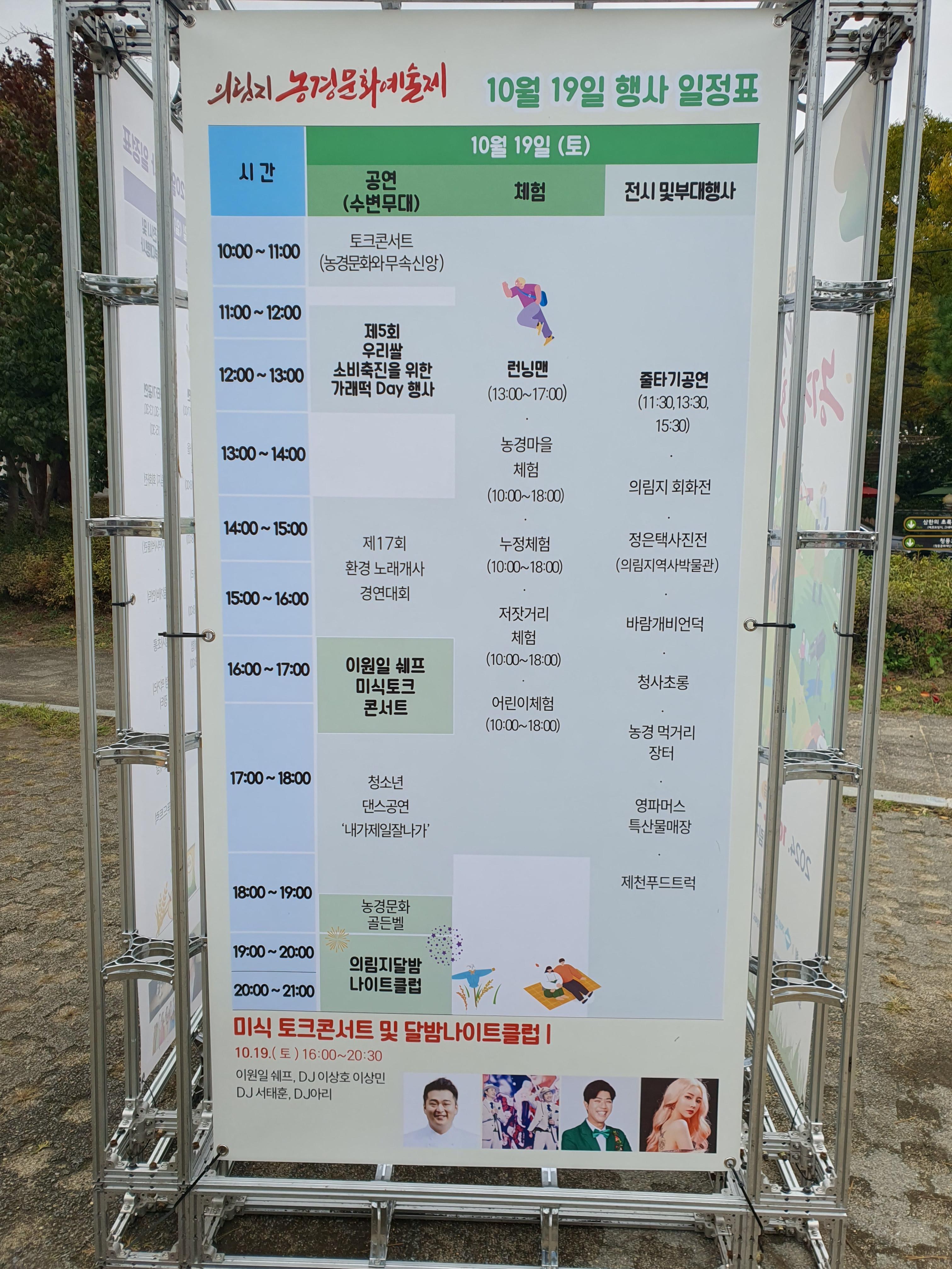 행사 기간 다양한 농경 문화를 경험할 수 있는 체험 프로그램을 운영하였는데 대장간·한복집 등 농경 저잣거리 체험, 의림지 뜰 생산 천년미소 쌀 이용 먹거리 체험, 모루 허수아비 만들기, 미꾸라지 잡기, 천연염색 체험과 농경 키링 만들기 등을 즐길 수 있었다.