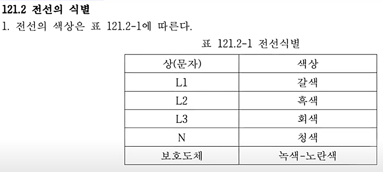 1. 전선의 색상은 표 121.2-1에 따른다.