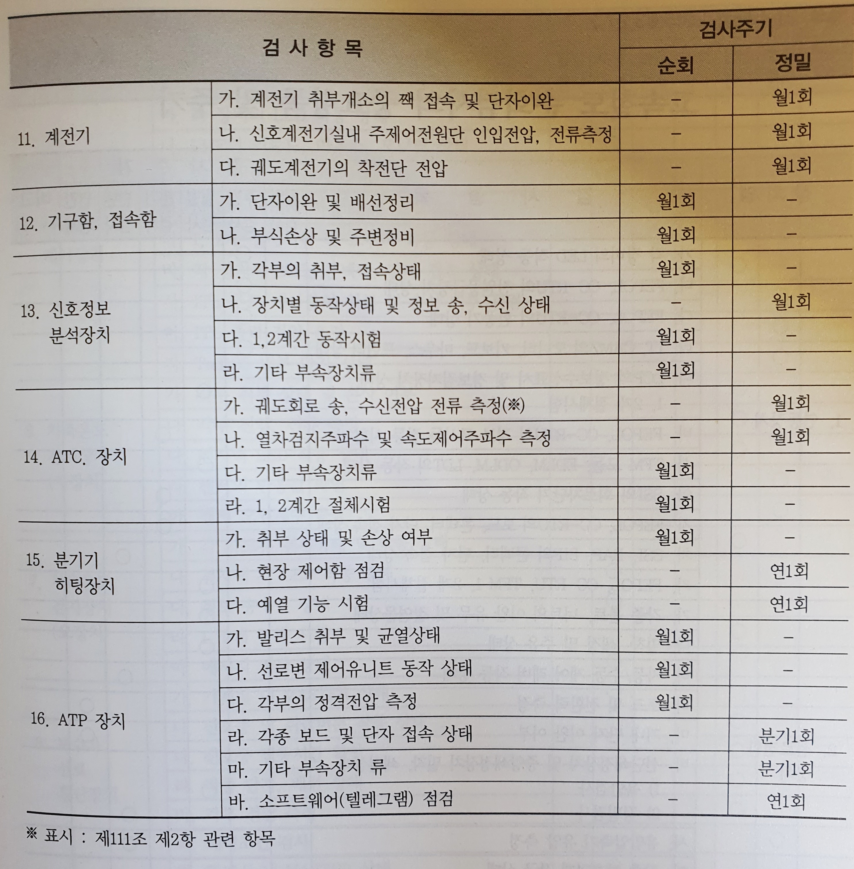 제111조(일상검사항목과 검사주기) 제1항 순회검사의 주요검사 항목과 검사주기 별표1, 별표2