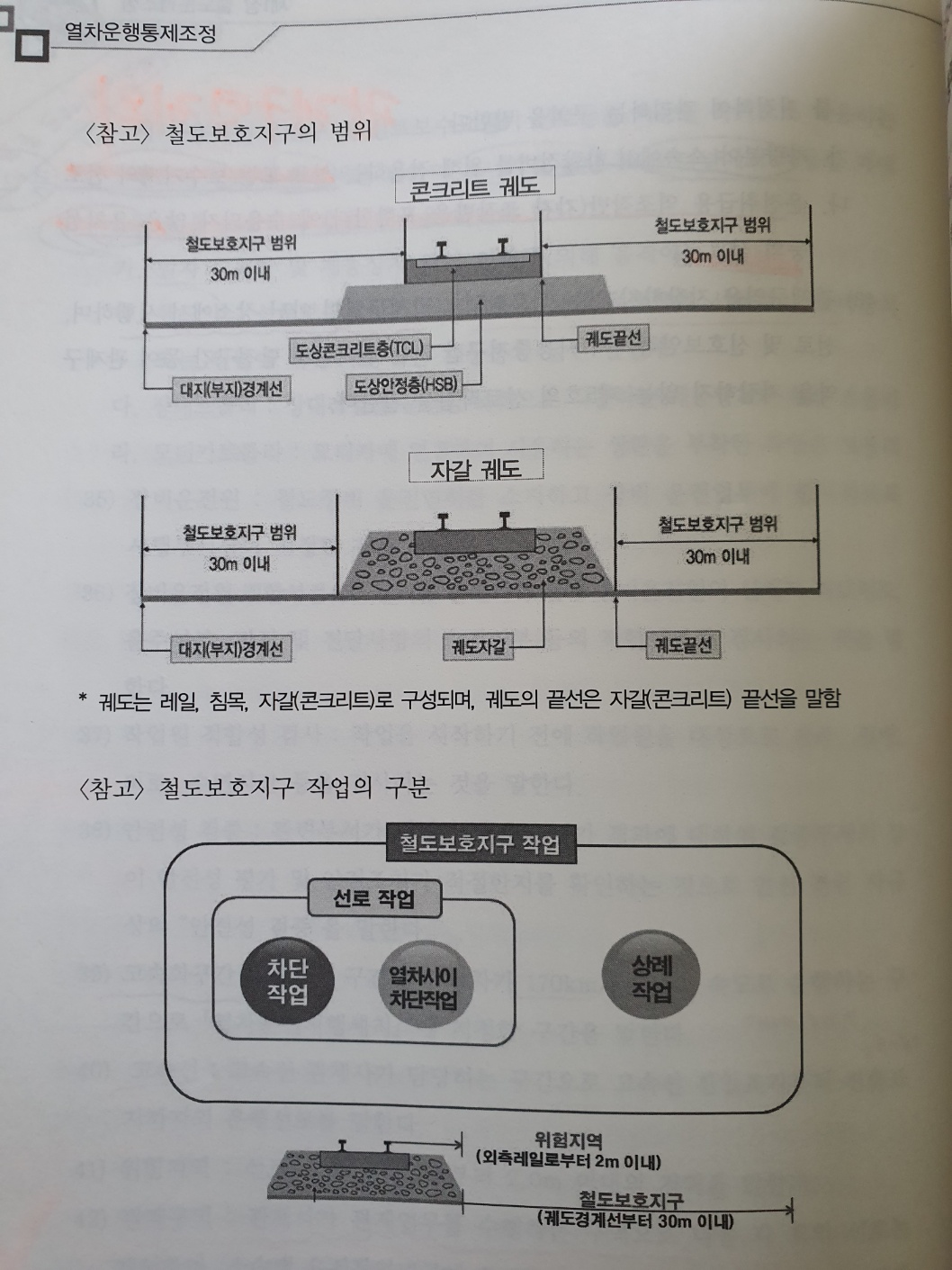 - 철도보호지구 범위 : 자갈궤도 궤도자갈끝선 30M