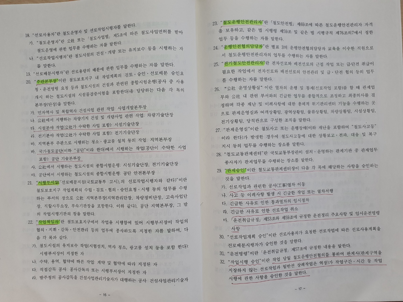 선로작업 세부사항(제3조제8호 관련)