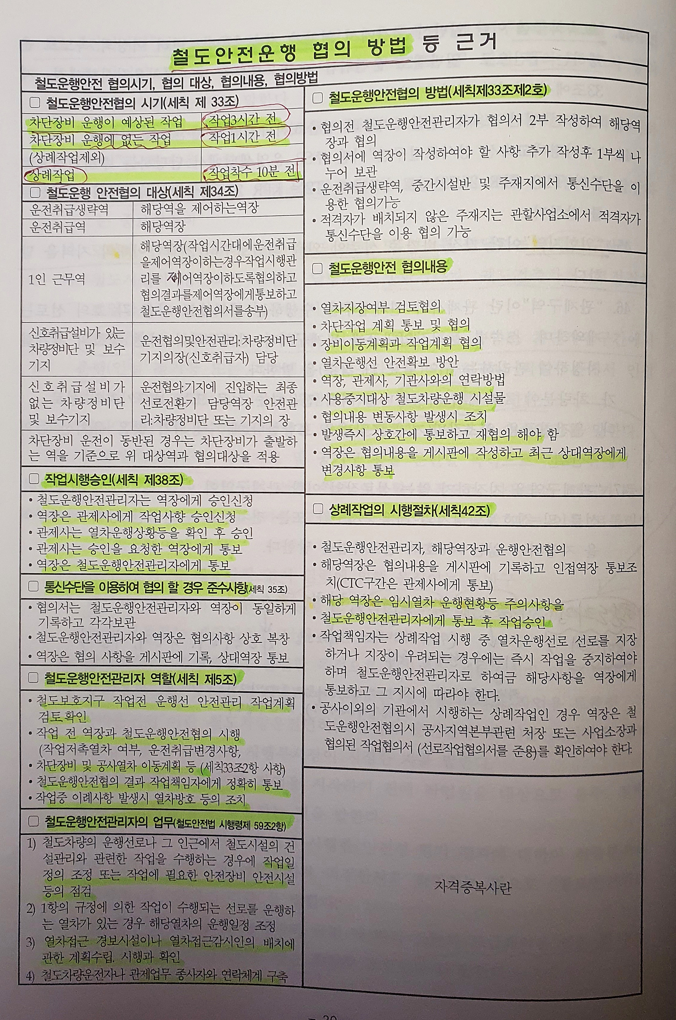제75조(공사열차 운행협의) ① 작업책임자는 공사열차 운행시각 3시간 전까지 역장과 다음 각 호의 사항을 협의하여야 한다. <개정 2018.09.28>
