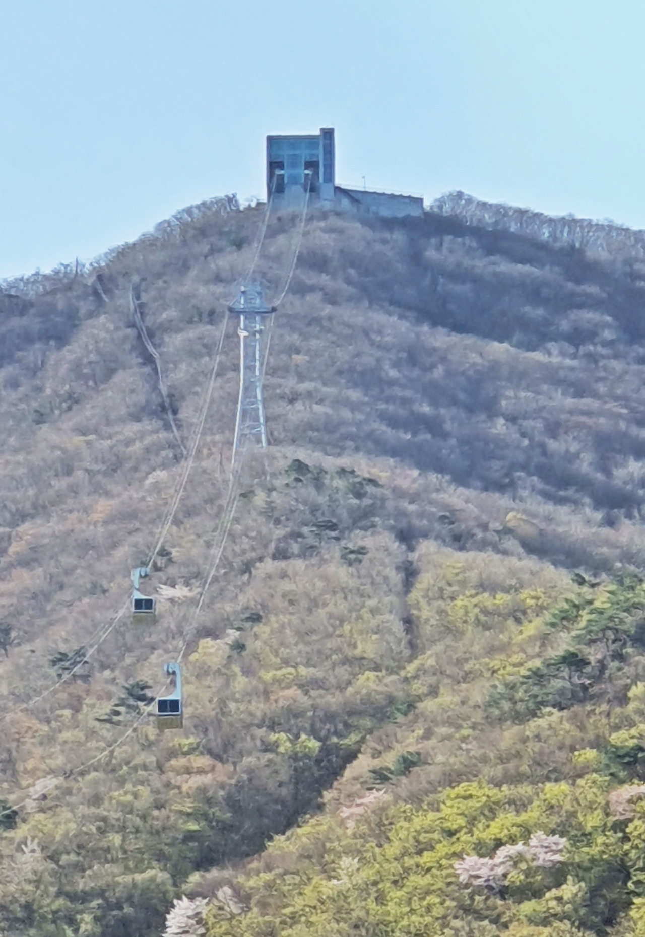 케이블카를 타고 백운산을 바라보면 백호(하얀 호랑이)가 보인다.