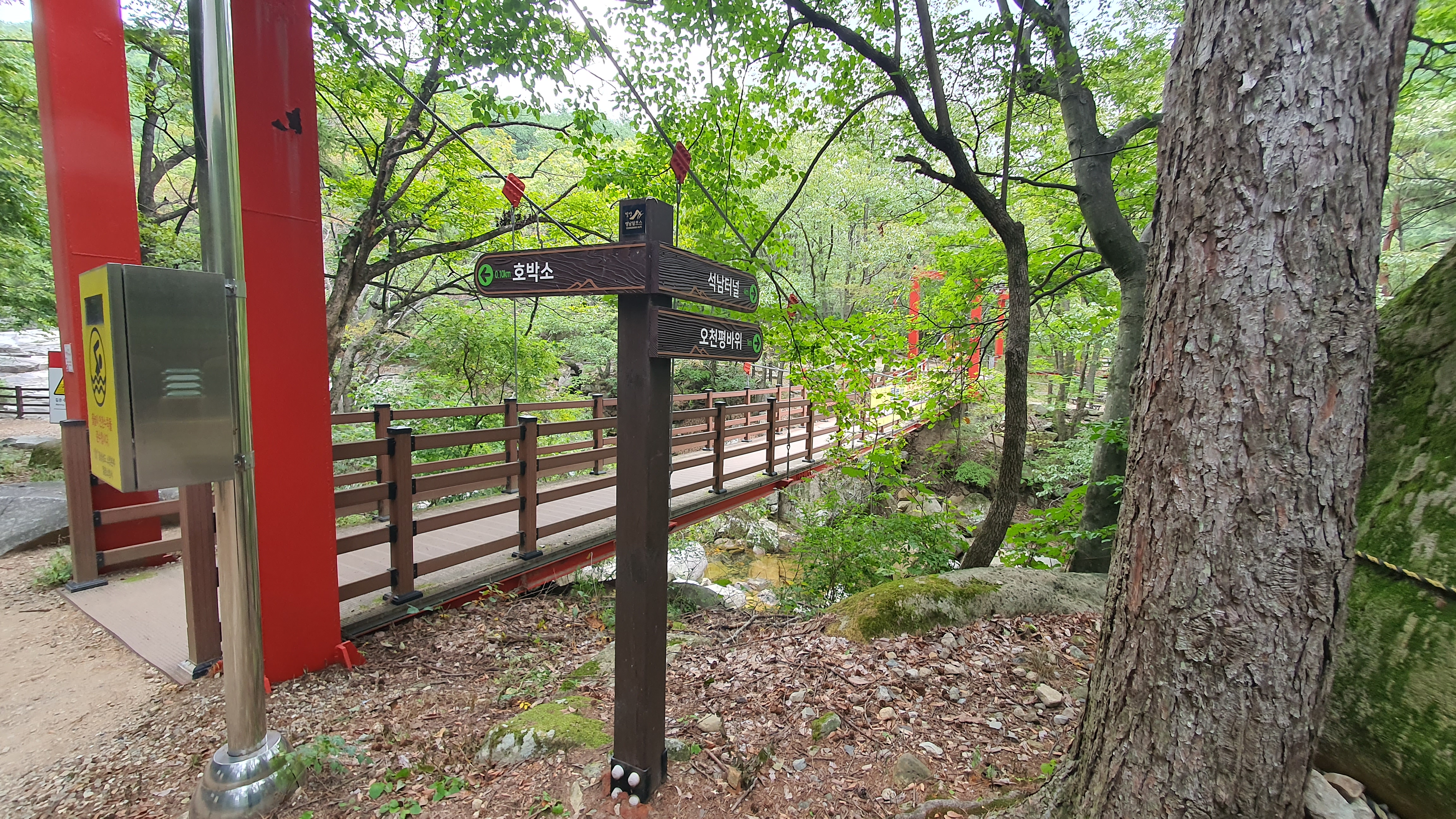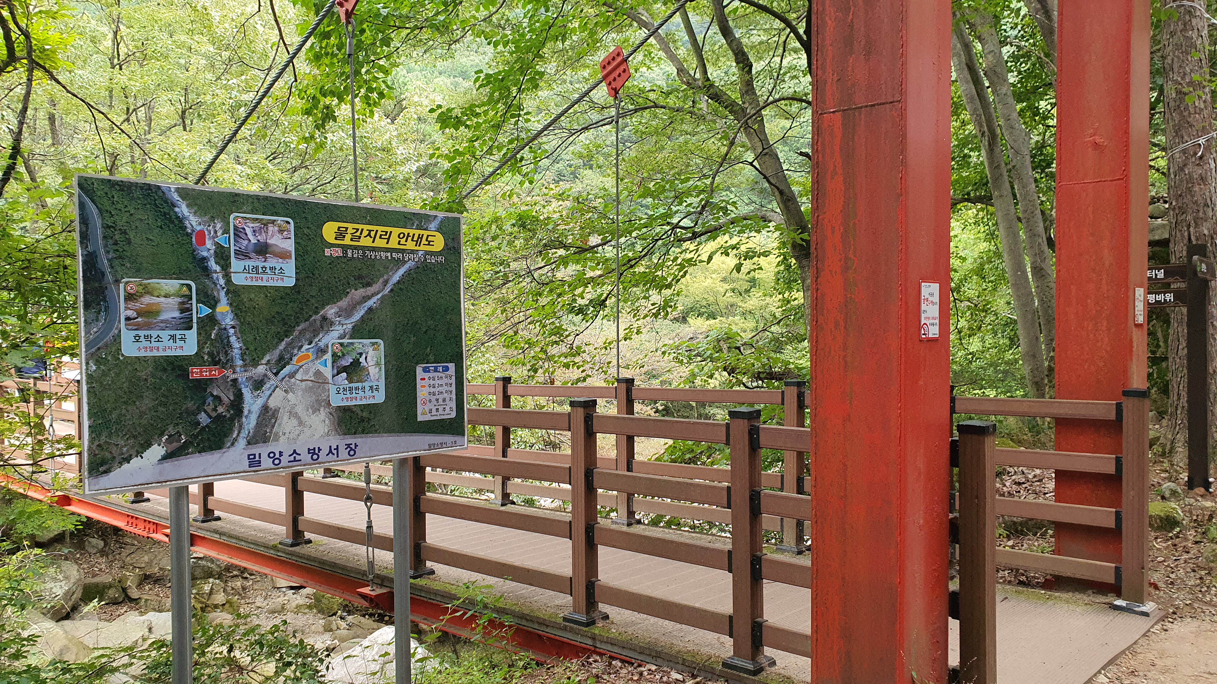 밀양시 산내면 남명리 시례마을에 있는 호박소는 재약산(천황산)에서 뻗어 내린 얼음골이 있는 곳인데 얼음골 케이블카에서 조금 더 올라가면 가지산의 한 물줄기인 호박소 계곡이 있다.