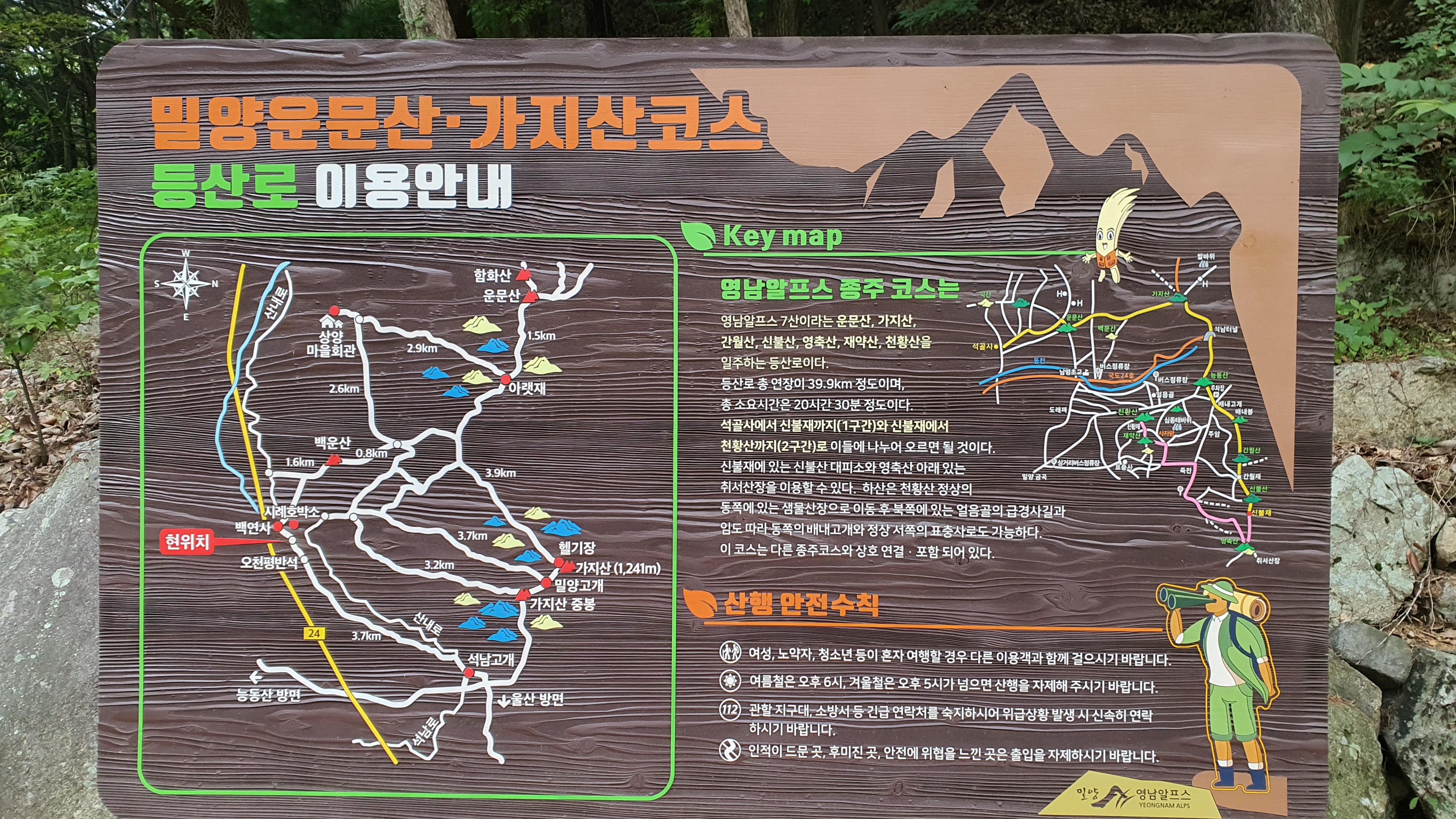 케이블카를 타고 올라가면 백운산 전경을 내려다 볼 수 있으며 천황산(재약산) 천황봉(1,119.1m) 정상으로 갈 수 있다.