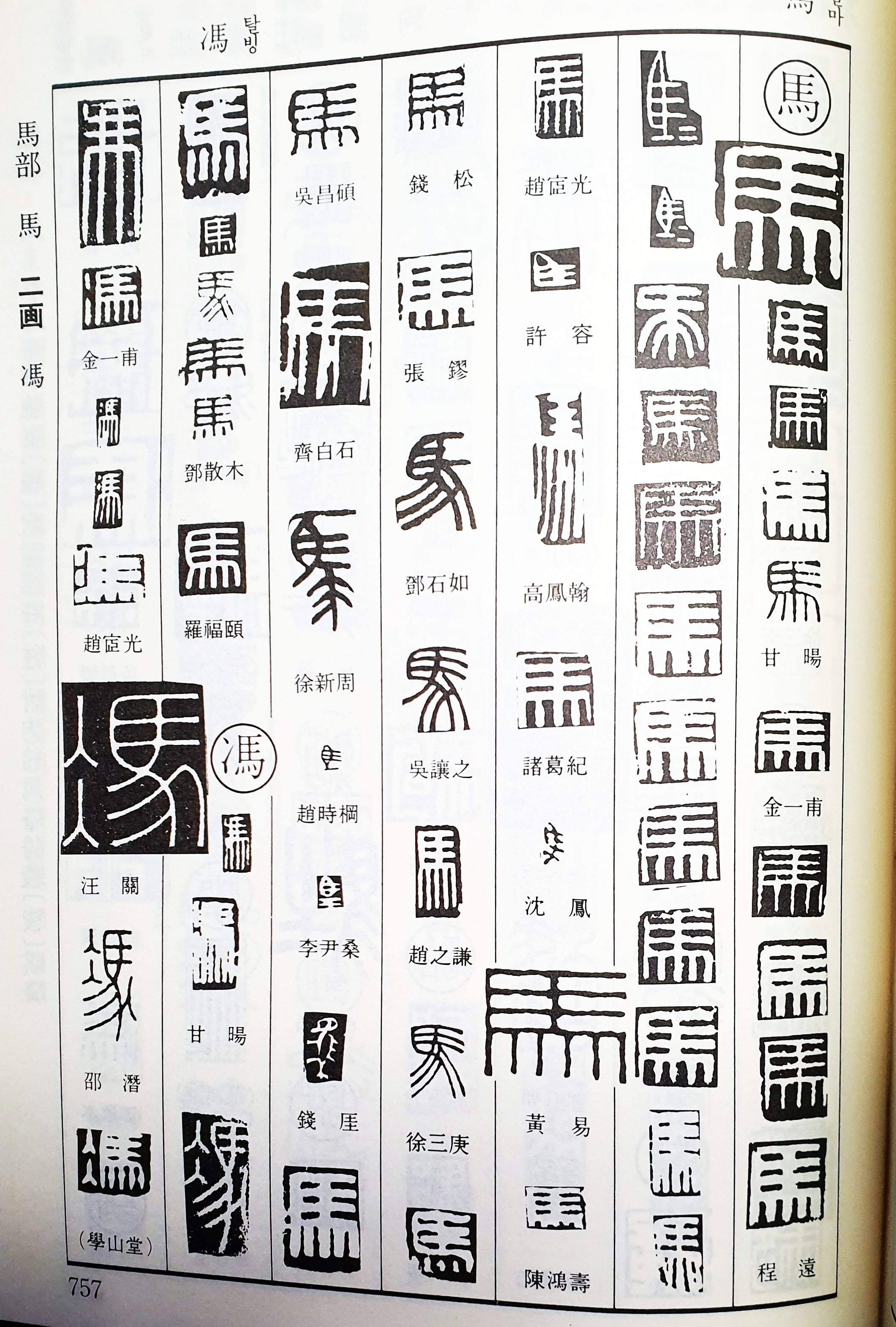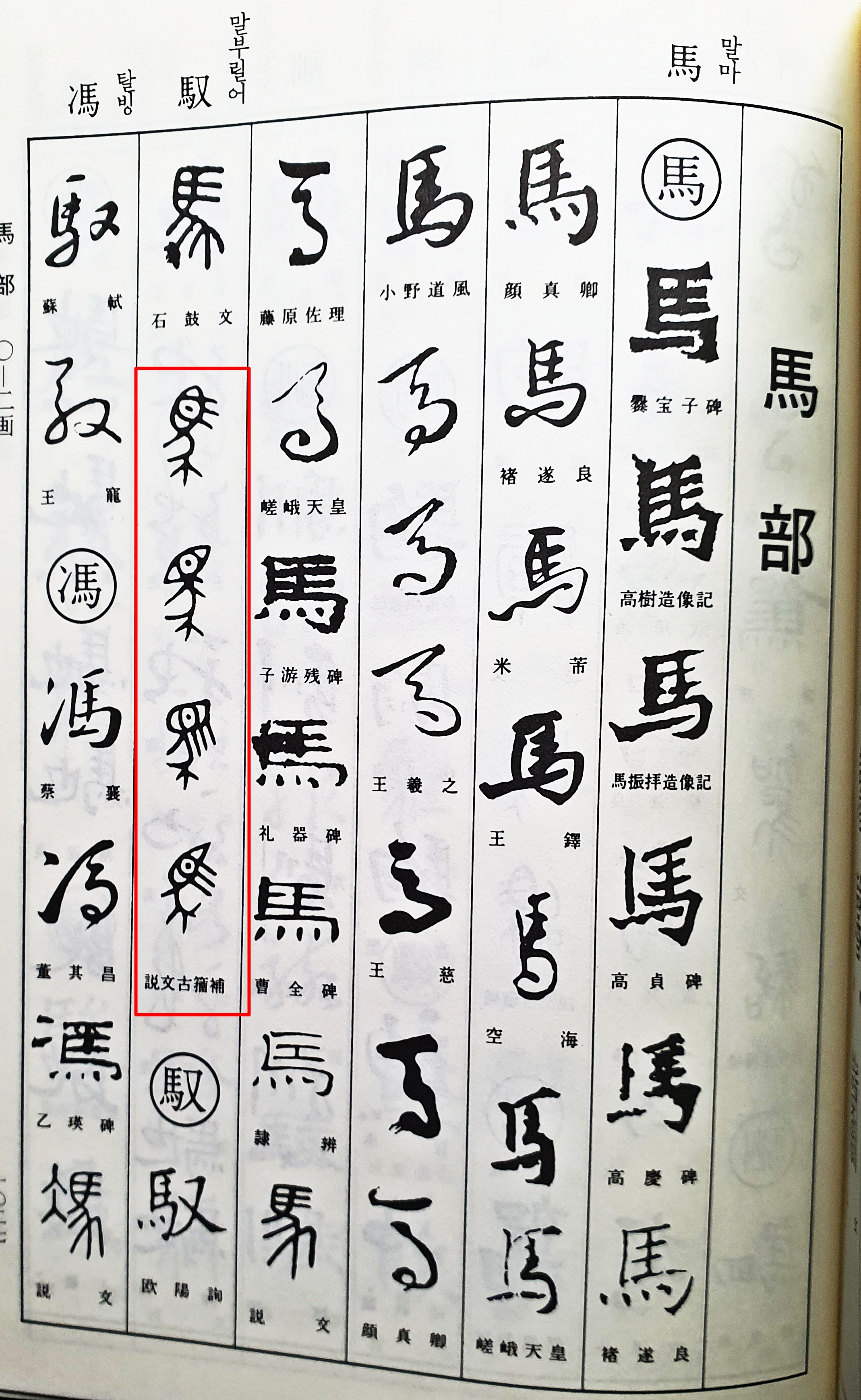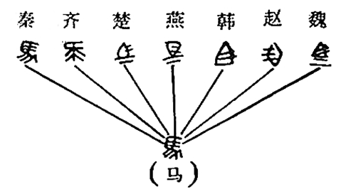진, 제, 초, 연, 한, 조, 위 나라가 각각 사용한 馬자는 진나라 시황제가 문자를 통일하였는데 이 한자를 소전(小篆)이라 했다.