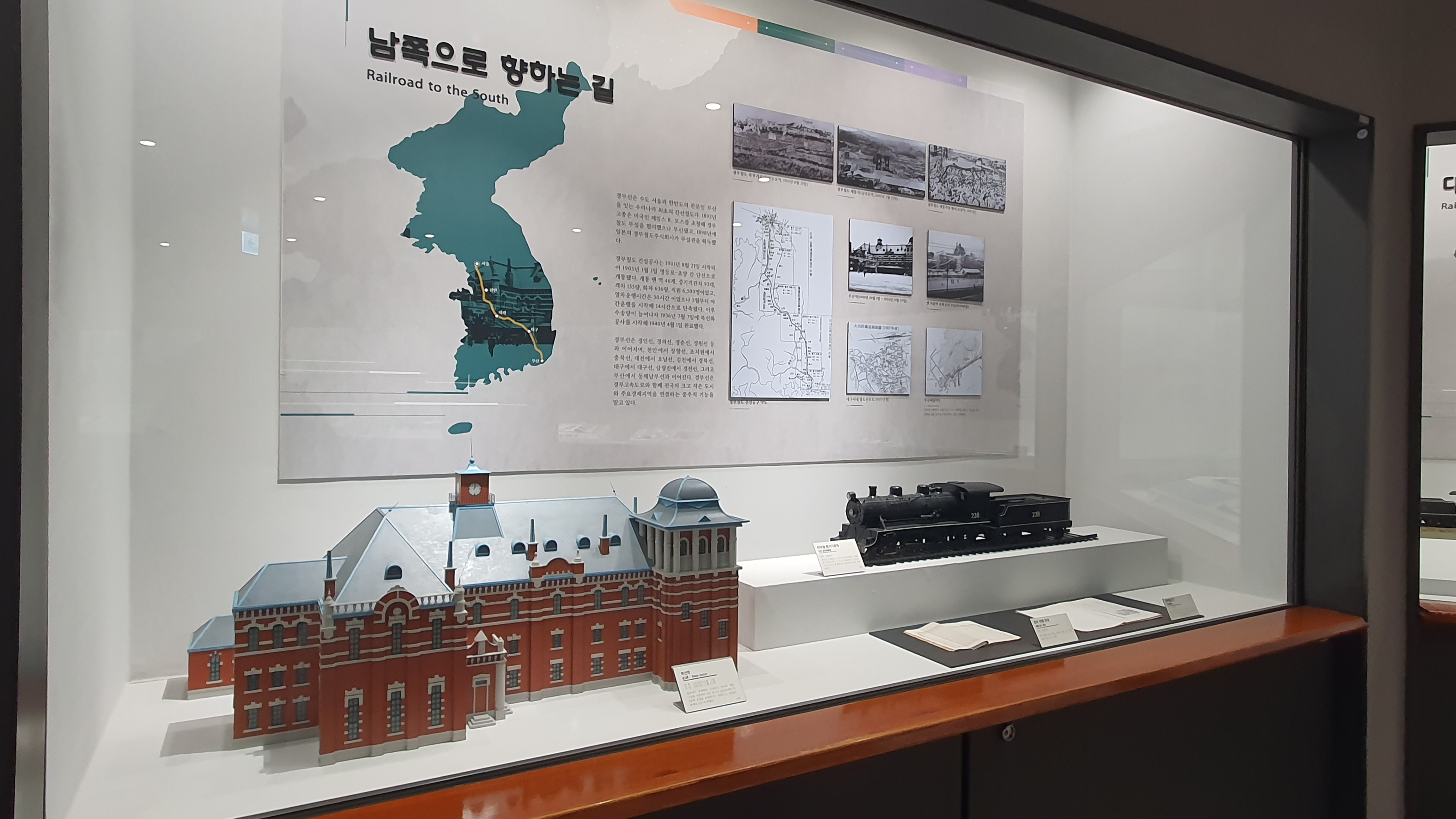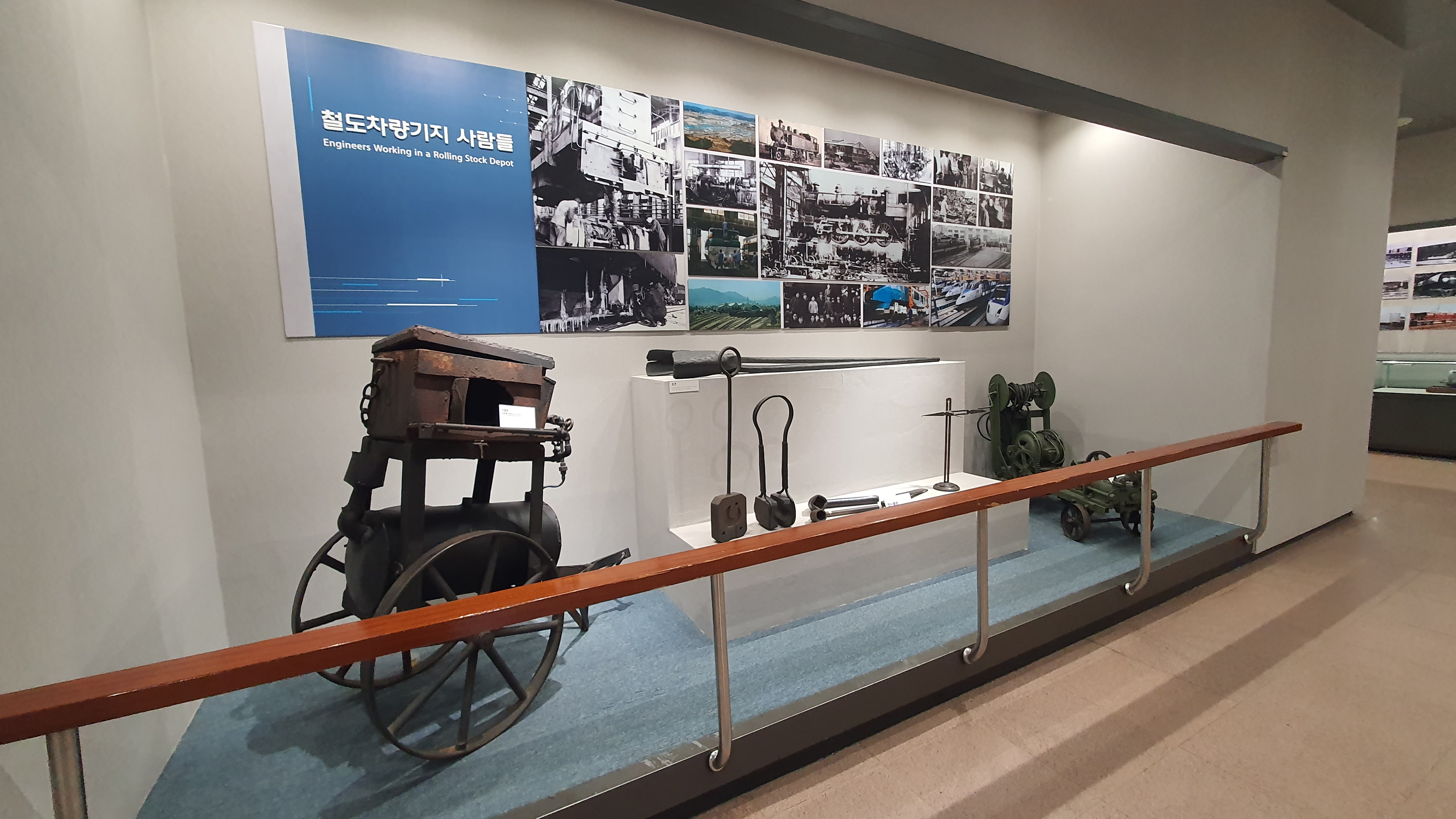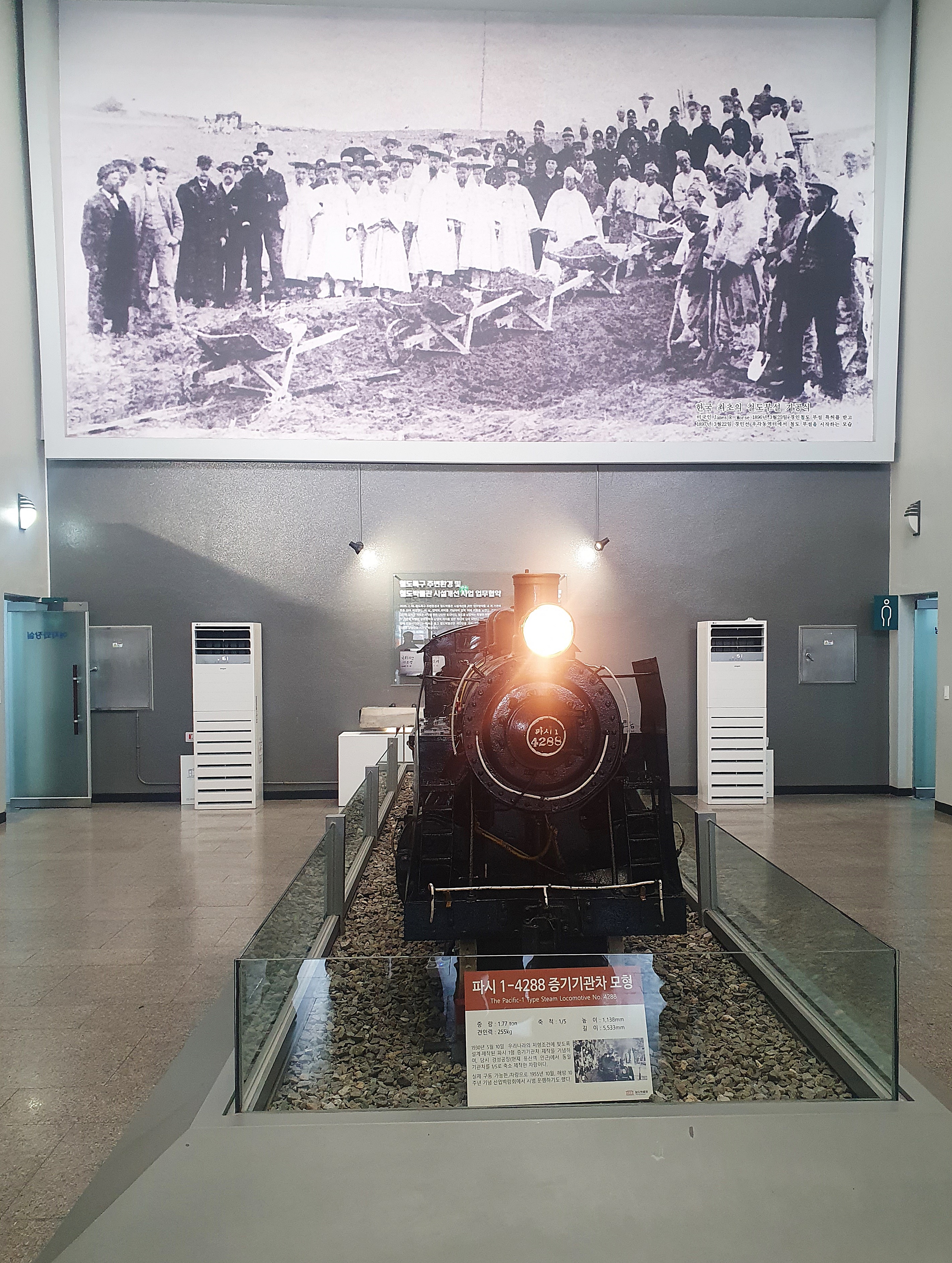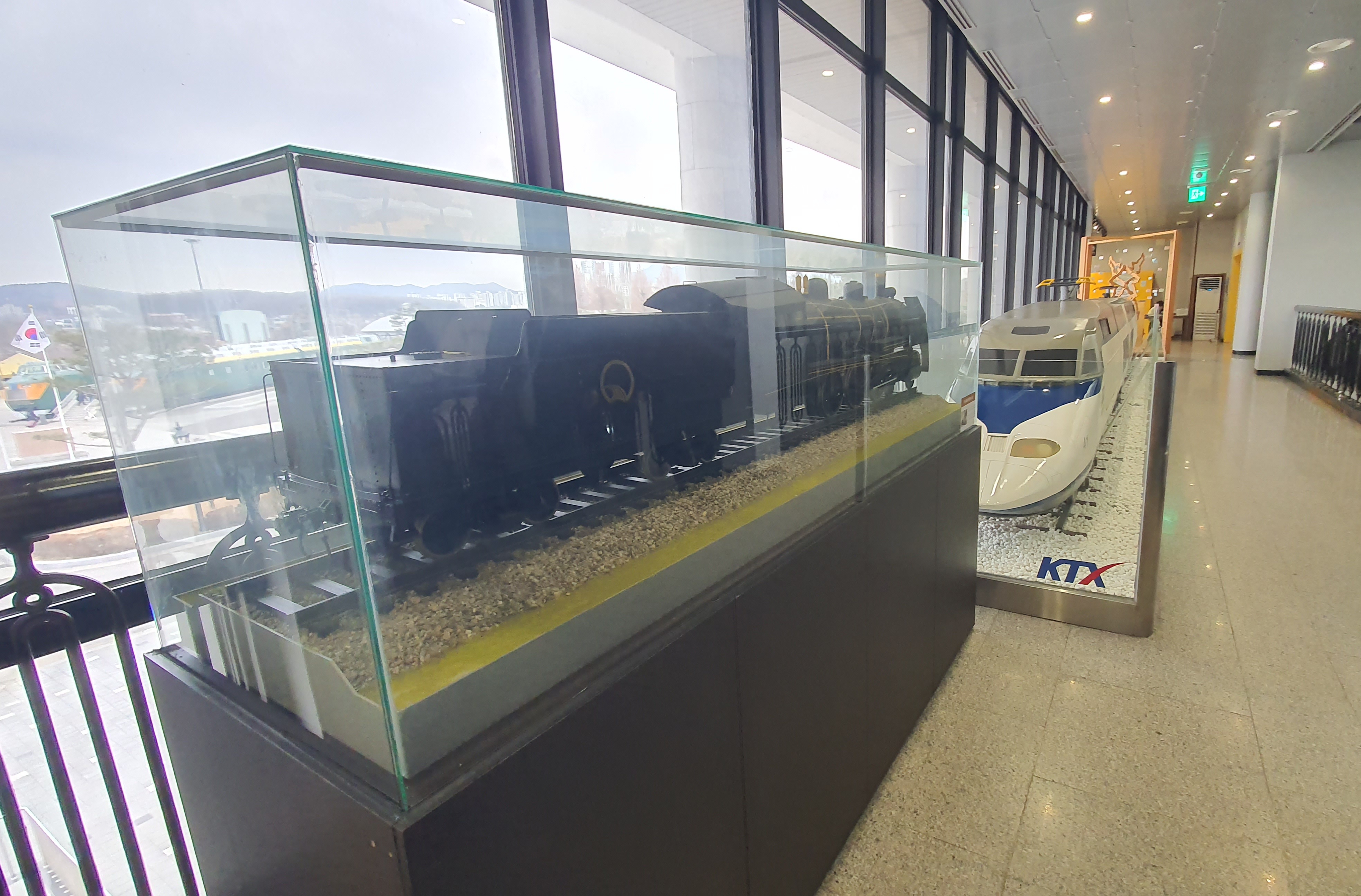 본관의 중앙홀에는 우리나라 최초의 철도인 경인철도 기공식 사진과 함께 파시 1형 증기기관차 1/5 축소모형이 전시되어 있다.