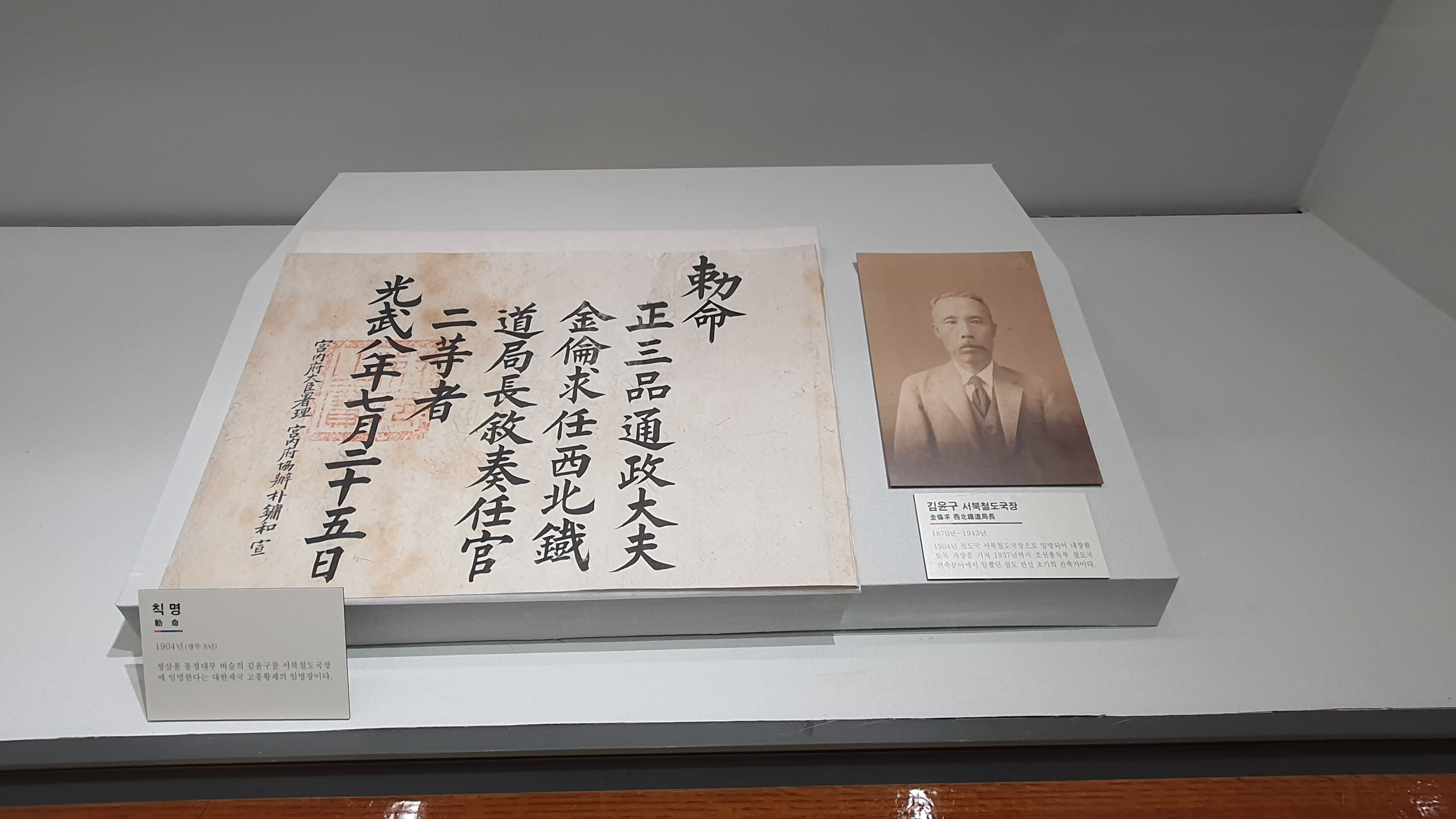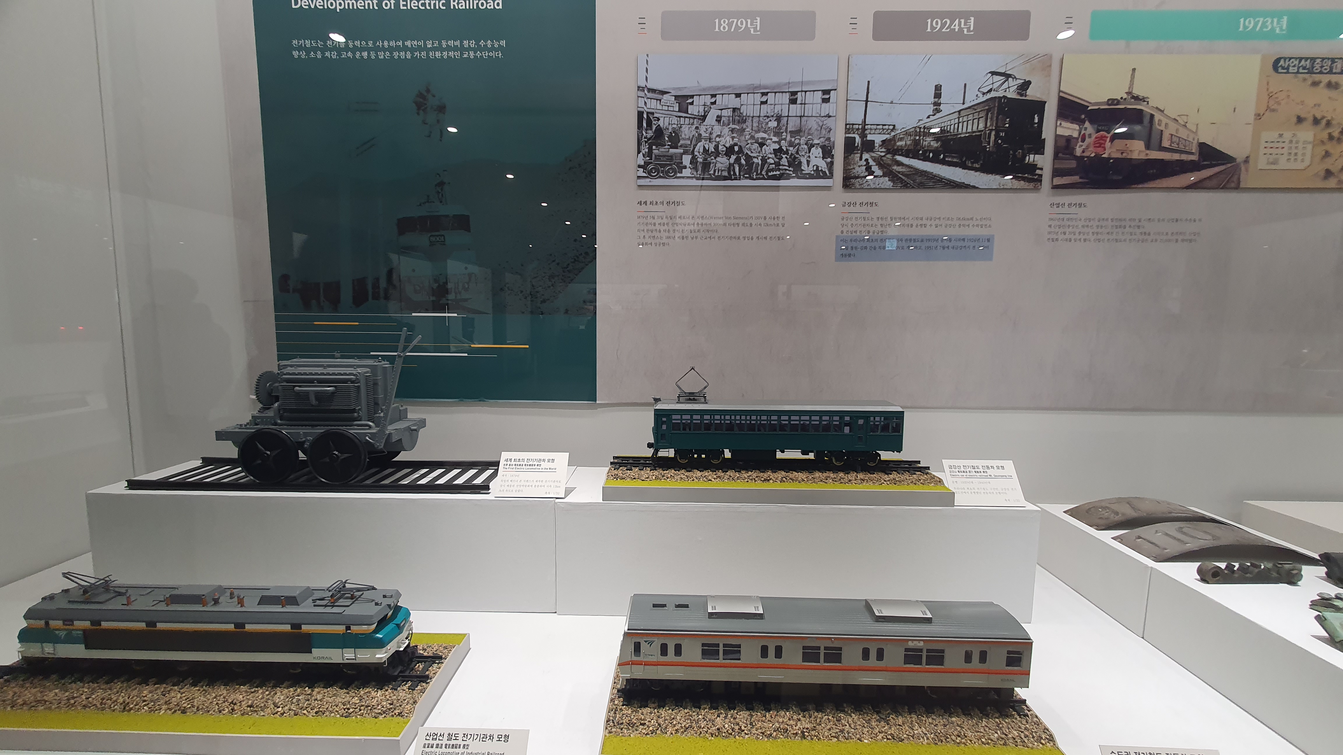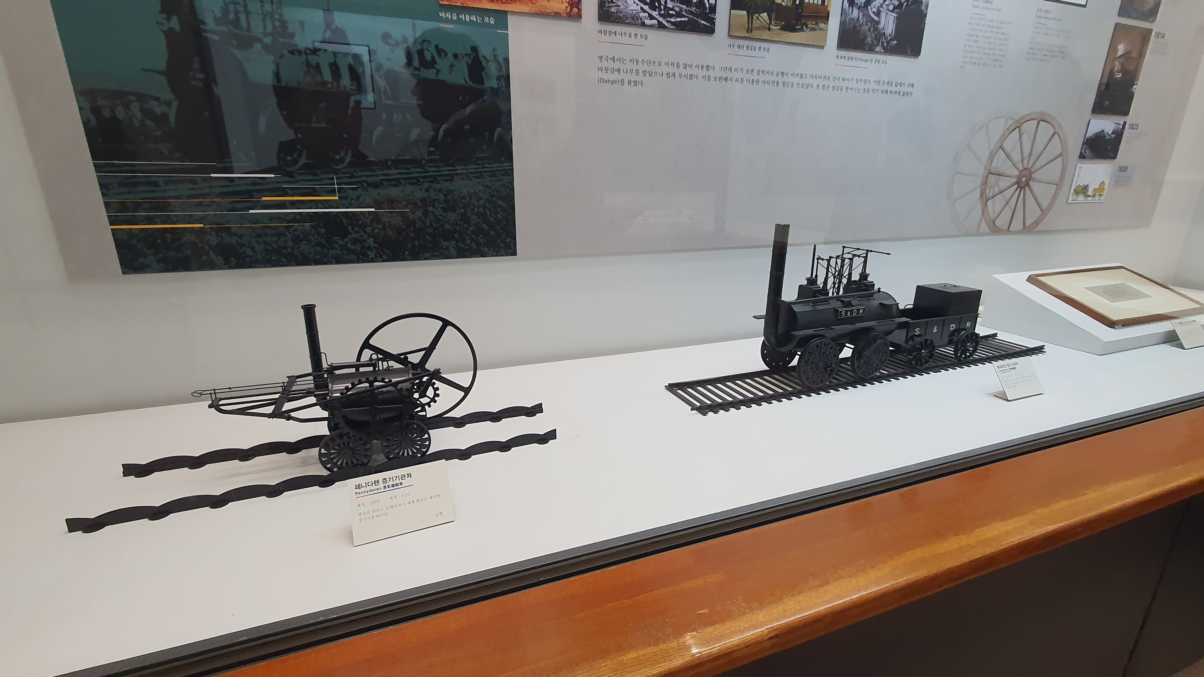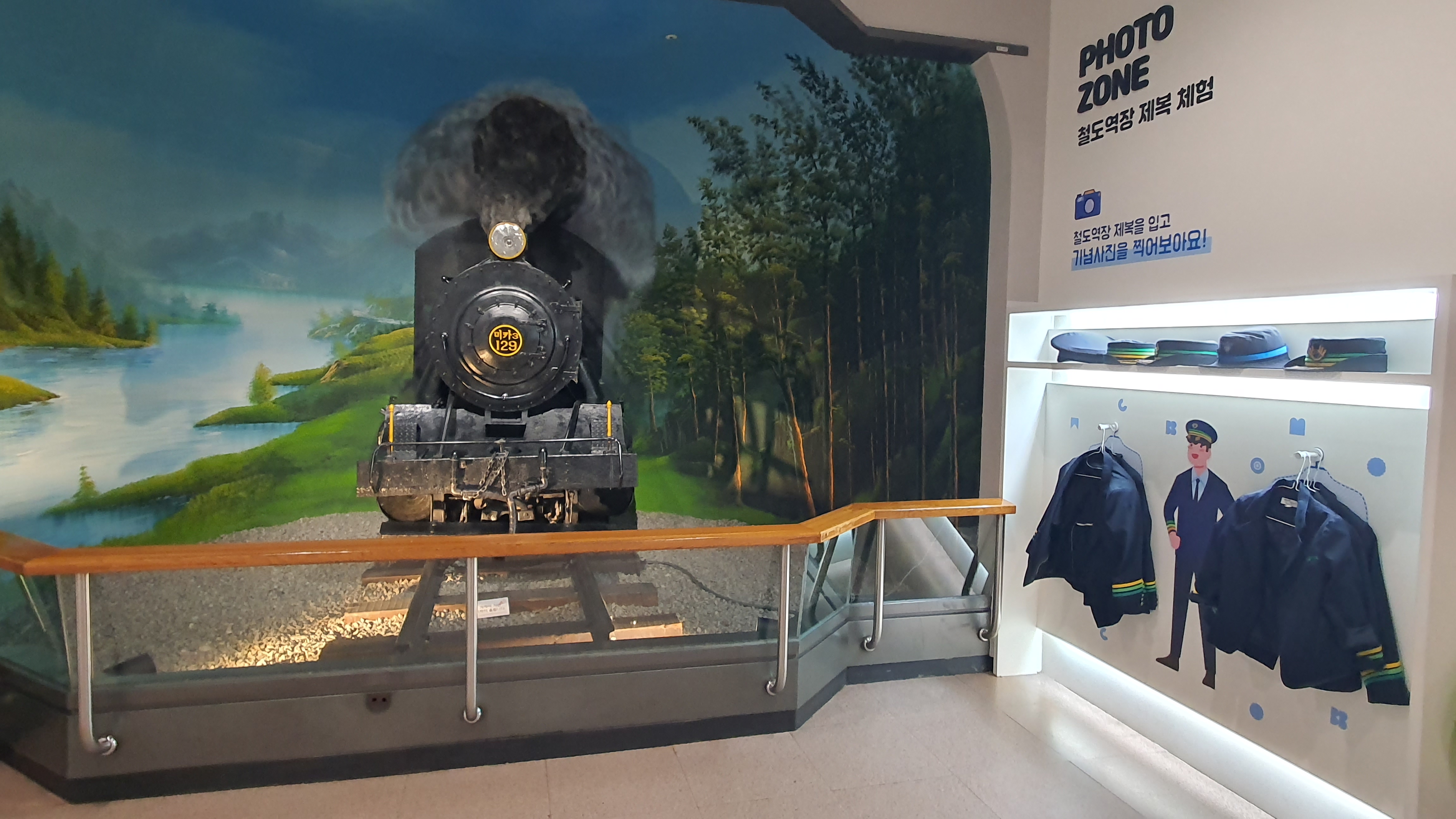 본관의 중앙홀에는 우리나라 최초의 철도인 경인철도 기공식 사진과 함께 파시 1형 증기기관차 1/5 축소모형이 전시되어 있다.