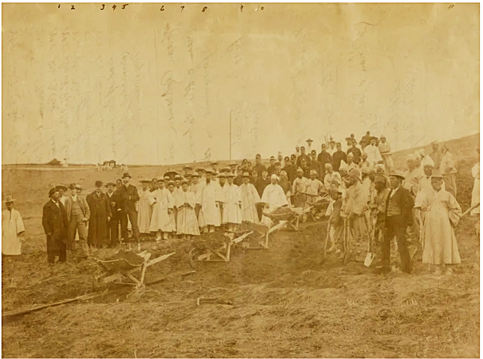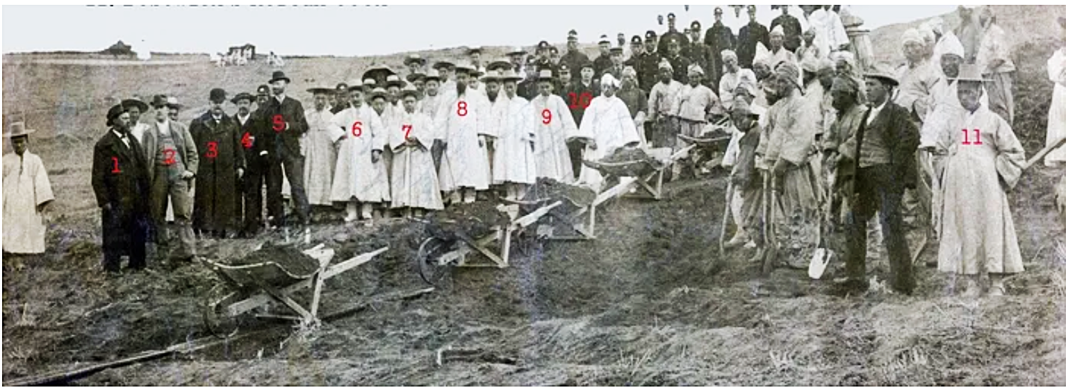 1897년 3월 22일 인천의 쇠뿔고개에서 열린 경인철도 기공식 보트윅스의 손녀가 기증한 원본 사진으로 사진 맨 위에 번호가 붙어 있고, 이 번호별 이름은 사진 뒷면에 조선인 6명과 미국인 4명, 프랑스인 1명 등 모두 11명이 표기되어 있다